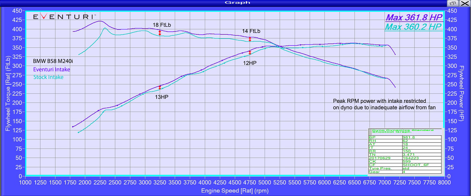 Die Eventuri-Lufteinlässe wurden so konstruiert, dass sie direkt hinter den Frontgittern sitzen, um so viel Luft wie möglich aufzunehmen, und mit einer durchgehenden Kurve zur Kanalöffnung, um sicherzustellen, dass dieser Luftstrom effizient geleitet wird. Das folgende Video erklärt die Konstruktionsmerkmale unserer M2-Ansaugvorrichtung, die direkt auf die B58-Ansaugvorrichtung übertragbar sind. Eine effektive Kaltluftzufuhr zum Filter ist ein wesentlicher Bestandteil unserer Konstruktion. Würden wir nur einige Hitzeschilde verwenden, würde dies zu erhöhten Einlasslufttemperaturen führen, da der Motorraum von der Hitze durchflutet wird – insbesondere bei diesem Motor, da sich der Verteiler direkt neben dem Einlass befindet.