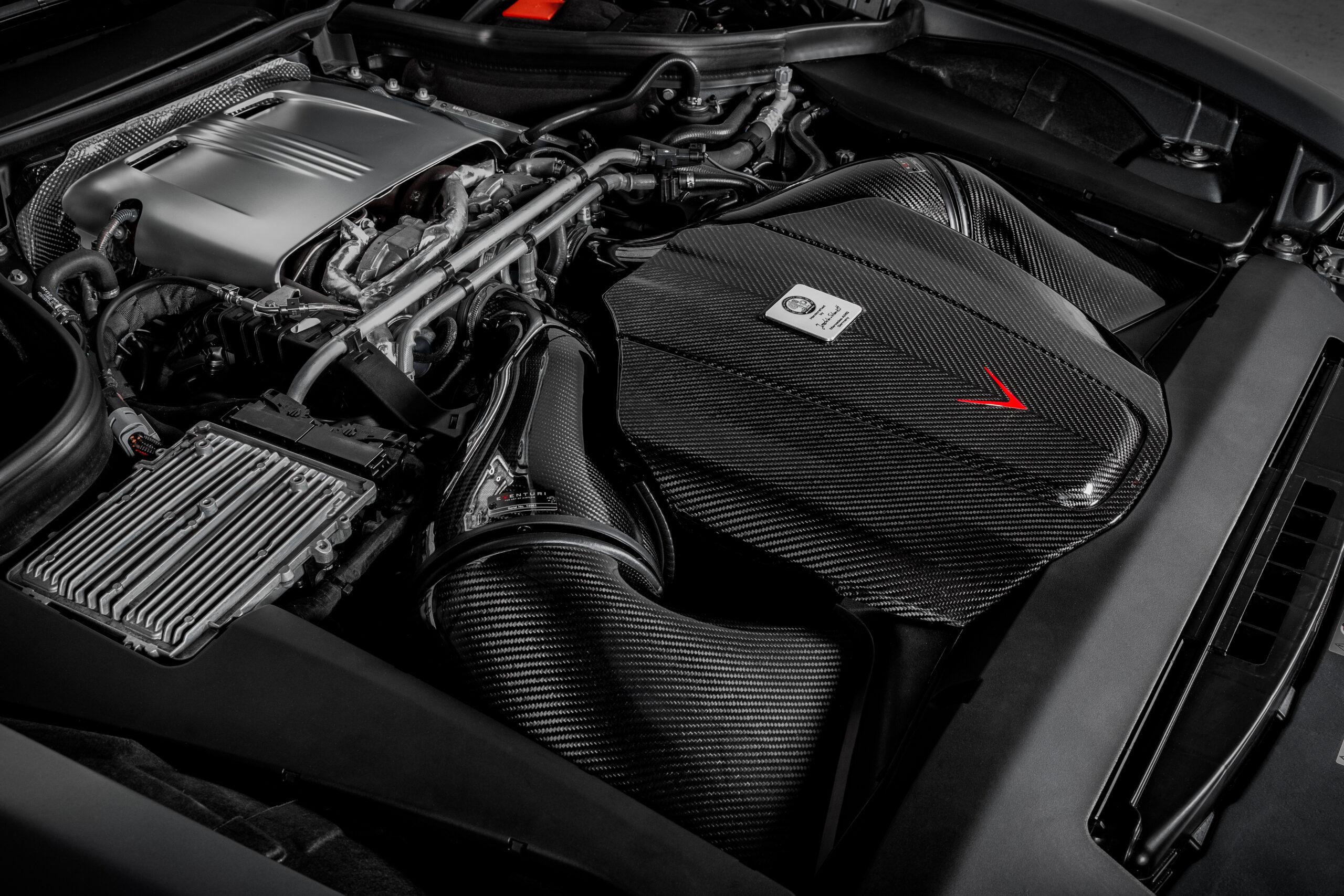 Das C190/R190 AMG GTR Eventuri-System verwendet unsere patentierten Carbonfasergehäuse mit unseren maßgeschneiderten Filtern der Generation 2, die einen aerodynamisch effizienten Luftstromweg vom Filter zu den Turbos bieten. Es handelt sich nicht nur um einen weiteren Kegelfilter mit Hitzeschild, sondern um ein einzigartiges Design, das den Venturi-Effekt nutzt und laminare Strömungsbedingungen aufrechterhält, um den Widerstand am Turbo zu reduzieren